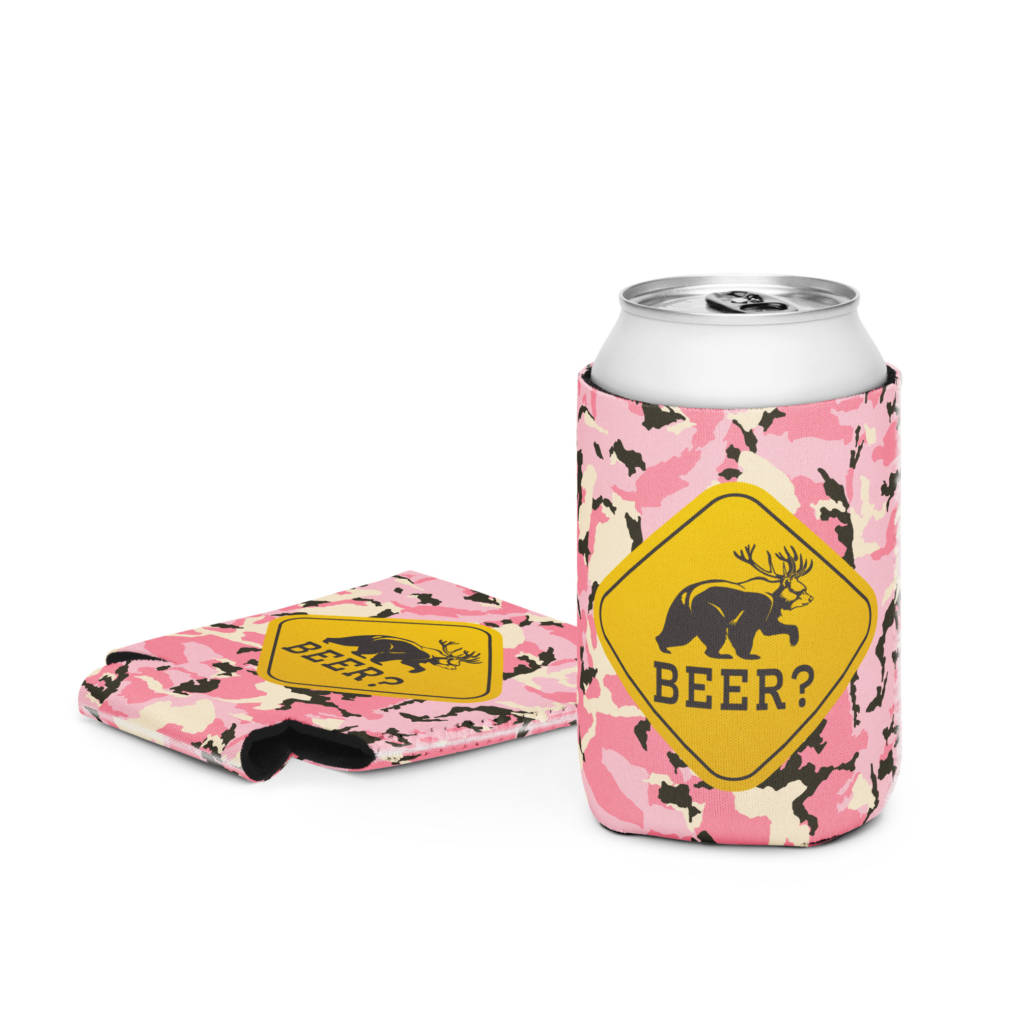 Gardez vos boissons froides avec style grâce à ce refroidisseur de canettes BEER camo rose.